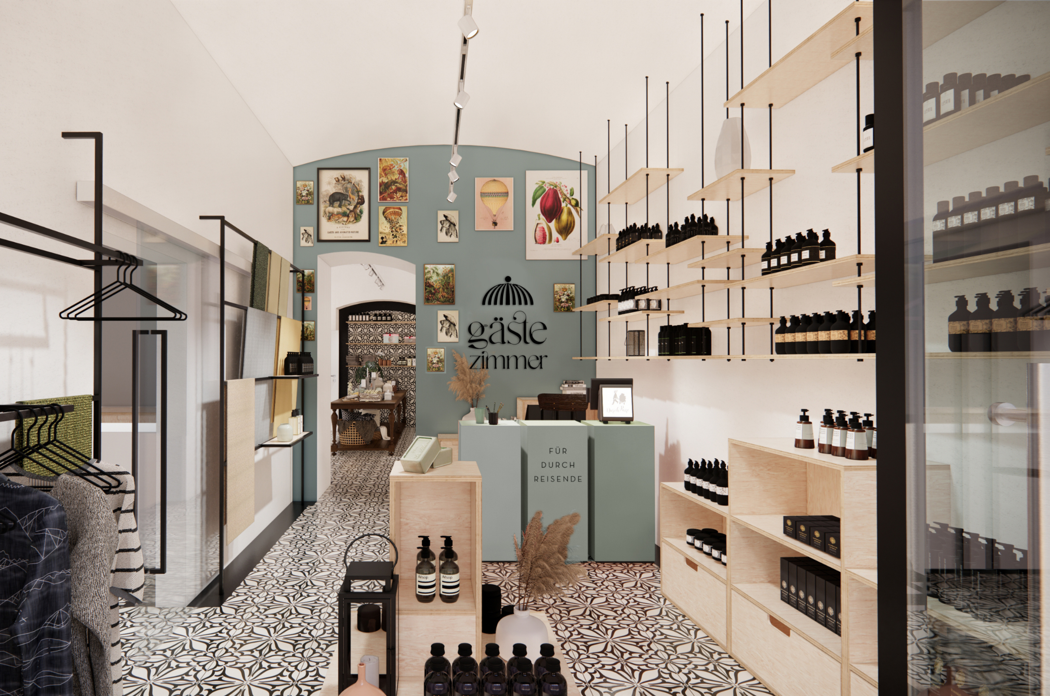 This rentable shop was designed as a multifunctional stage for creativity. Whether hosting a jewelry workshop, a beauty event, or an intimate reading—this is a space for exchange, inspiration, and presentation. The interior features flexible, functional furniture, clear lines, and warm, inviting materials. At its center: a long wooden table belonging to the owner, serving as the visual and emotional anchor of the space. A place where creatives can step in, set up, and make their vision visible.
